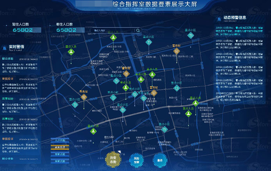 融合通信,通過集成通信平臺,進行一鍵點調進行雙方通話,檔案視頻的接入,以地圖的方式顯示市局、分局、派出所檔案室的相關視頻及相關預案。