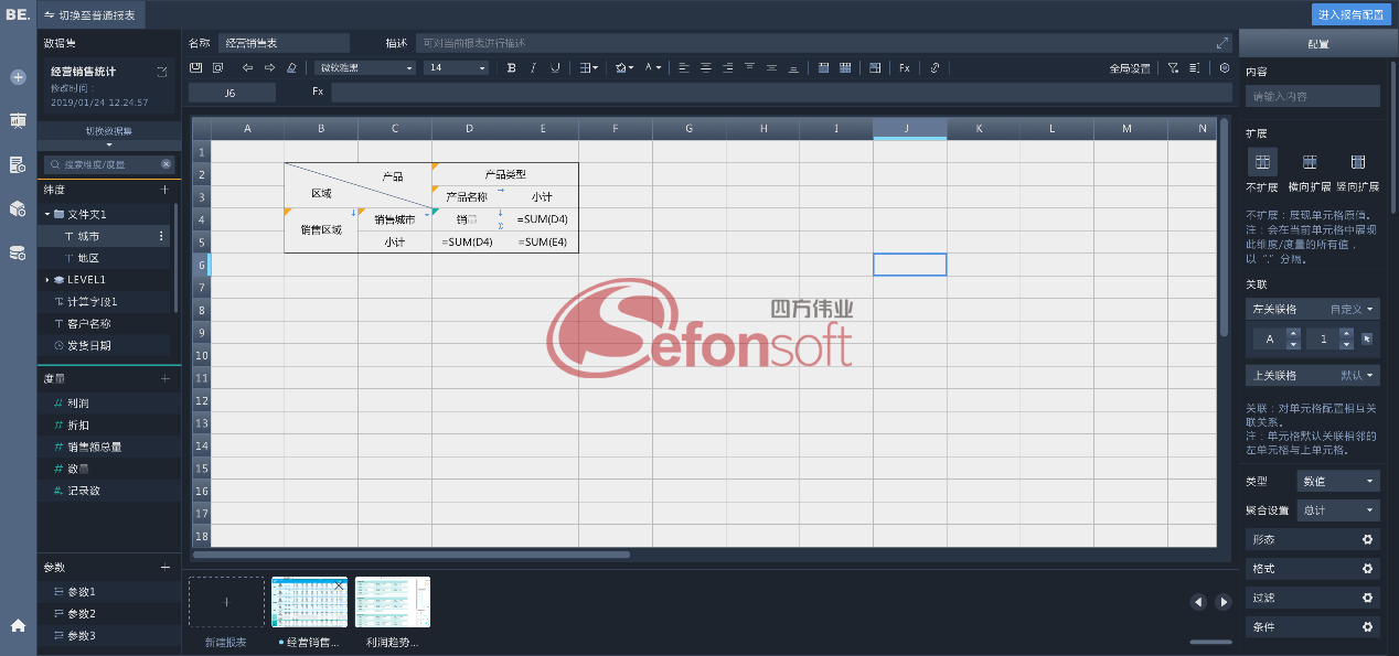 具備高級報表分析能力,可快速配置中國式復雜報表,根據格式、形態等配置能力,構建樣式豐富的報表效果。