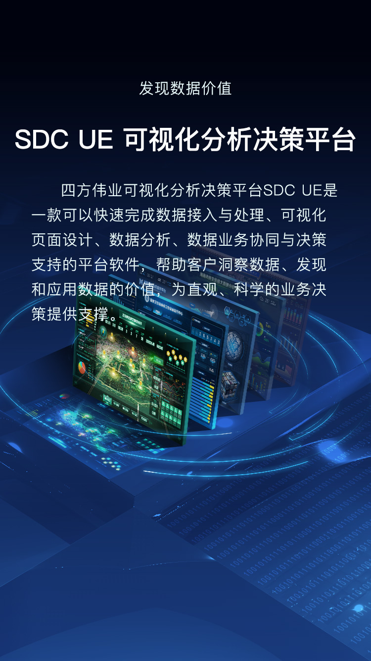 四方偉業可視化分析決策平臺SDC UE是一款可以快速完成數據接入與處理、可視化頁面設計、數據分析、數據業務協同與決策支持的平臺軟件,幫助客戶洞察數據、發現和應用數據的價值,為直觀、科學的業務決策提供支撐。