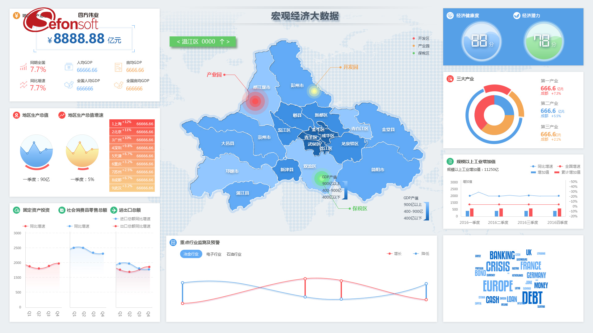 隨著中國經(jīng)濟步入新常態(tài),經(jīng)濟增長從高速轉(zhuǎn)為中高速,從規(guī)模速度型粗放增長轉(zhuǎn)向質(zhì)量效率型集約增長,從要素投資驅(qū)動轉(zhuǎn)向創(chuàng)新驅(qū)動。要真正落實“提質(zhì)增效、開放創(chuàng)新”的經(jīng)濟運行模式,就需要政府領(lǐng)導(dǎo)和決策者具備一雙能夠洞悉區(qū)域經(jīng)濟一舉一動的慧眼,時刻了解經(jīng)濟運行各個層面的真實情況,監(jiān)測行業(yè)和企業(yè)的運行情況,才能抓住要害,對經(jīng)濟運行進行有針對性的調(diào)整和優(yōu)化。其背后必須依賴大數(shù)據(jù)技術(shù),透視經(jīng)濟現(xiàn)狀、把握經(jīng)濟脈搏、科學(xué)指導(dǎo)和輔助決策新常態(tài)下的新經(jīng)濟發(fā)展。經(jīng)濟運行大數(shù)據(jù)開發(fā)利用的時機已經(jīng)到來。