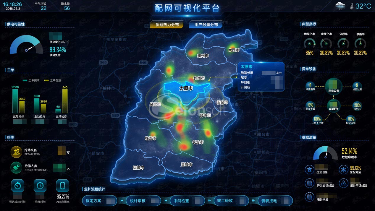 依托大數據、人工智能技術,把大數據充分應用到配網指揮調度、營銷客戶分析、臺區精益化、設備故障搶修、光伏建設、能效管理等等業務領域,在實踐中不斷創新探索。堅持以應用為中心,找準大數據技術與電網企業各項工作的結合點,強化大數據分析研判和應用智能化。