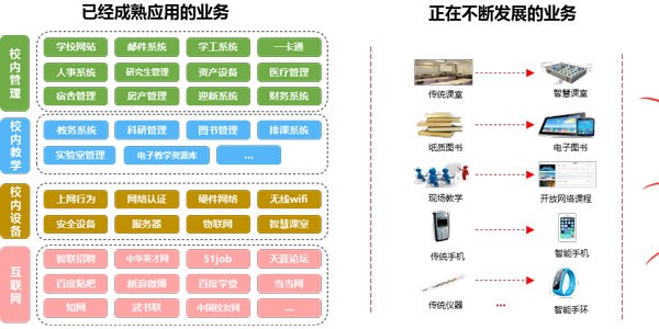 智慧校園利用“物聯(lián)網(wǎng)+云計算+大數(shù)據(jù)”,構(gòu)造智慧化的校園學(xué)習(xí)、生活、環(huán)境。將教學(xué)、科研、管理與校園生活進(jìn)行充分的融合,實現(xiàn)校園管理智能化、校園生活一體化、校園設(shè)施數(shù)字化、課堂教學(xué)生動化、家校溝通無縫化。